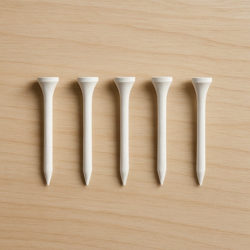 Standard wooden golf tees measurement reaches roughly 2 inches tall. Five tees stacked vertically create a perfect 10-inch tower. Golfers carry these in pockets every round.